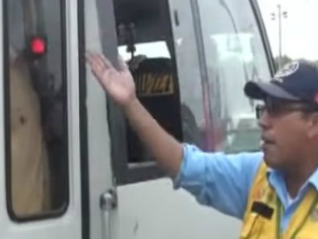 Durante un operativo en el distrito de Santiago de Surco, el cobrador de una cúster pirata se negó abrir la puerta para que los pasajeros pudieran descender.