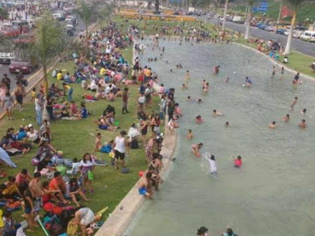 Nuevamente la pileta ornamental que está muy cerca de la playa Agua Dulce, en el distrito de Chorrillos, fue utilizada durante el primer día del 2020 como una piscina.