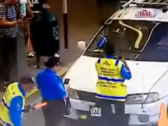 Eran las 5:32 de la tarde cuando las cámaras de vigilancia de la Municipalidad de Miraflores logran detectar un taxi circulando por la vía exclusiva para el transporte masivo. Fue en ese momento que tres inspectores municipales y un sereno intervienen la unidad.