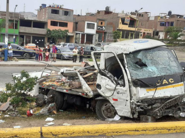 Una persona murió y seis quedaron heridas tras el despiste y posterior choque de un camión contra una mototaxi y un bus de transporte público a la altura de la Av. Cusco cruce con Arequipa, en el distrito de Ventanilla, Callao.