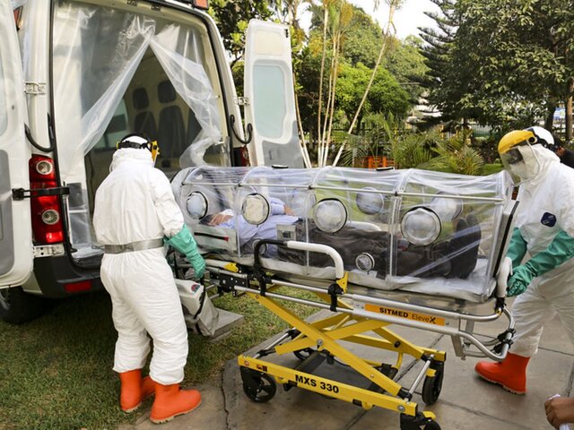 Aislados del resto de personas y cubiertos al 100% dentro de camillas especiales serán trasladados los posibles casos de coronavirus que lleguen a nuestro país por el Aeropuerto Internacional Jorge Chávez o por el puerto del Callao.