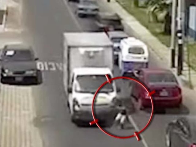 En el distrito de Surco, una cámara de seguridad registró el momento exacto cuando cuando un menor de 8 años fue embestido por un camión furgón. El accidente fue captado en al a altura de la cuadra 5 del jirón Juan Soto Bermeo.