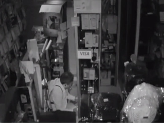 Al delincuente se le observa hasta tres celulares en cada mano para acelerar el asalto. En tan solo siete minutos el ladrón se llevó 50 celulares de alta gama, posteriormente se observa que va en busca del dinero, producto de las ventas del día anterior.