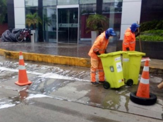 Personal de Limpieza de la Municipalidad de Mirafloresdesinfectó esta mañana los exteriores del Hotel Sol de Oro, ubicado en la cuadra 3 de la calle San Martín luego que se reportaran varios casos de coronavirus.