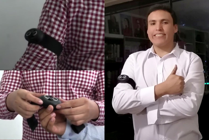 Miembros del Grupo Técnico de Egresados de la Universidad Nacional de Ingeniería, unieron esfuerzos para crear una brazalete que es capaz de emitir una alerta cuando la persona que lo usa está a punto de tocarse el rostro.