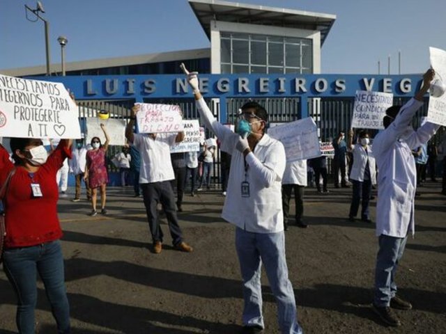 Asimismo, varios de ellos se contagiaron el nuevo coronavirus. “Nueve trabajadores de salud están actualmente infectados con COVID-19, entre ellos dos médicos. Un colega está hospitalizado, estable al momento, pero hospitalizado y con tratamiento oportuno. No esperemos que más colegas, que más compañeros de trabajo se enfermen. Seguimos en pie de lucha, seguimos trabajando”, expresó Grober Rojas, presidente del cuerpo médico del hospital Negreiros.