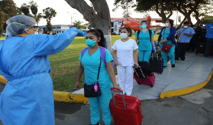 Una delegación conformada por 51 especialistas de la salud fueron enviados a la ciudad de Iquitos para laborar y luchar contra el COVID-19 en el primer hospital itinerante.