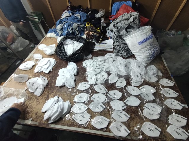 La Policía Nacional del Perú capturó a dos hermanos mellizos cuando fabricaban mascarillas KN95 al interior de un taller textil ubicado en la cuadra 10 del Jirón Cotosh de la Urbanización Mangomarca Baja, en San Juan de Lurigancho.