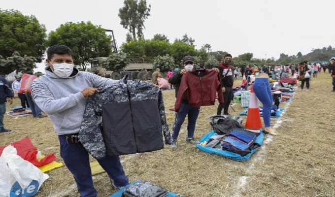Más de 600 comerciantes ambulantes empadronados por la Municipalidad de La Victoria y más de 400 de San Juan de Miraflores formaron filas desde muy temprano para acceder al centro recreacional y poder ofrecer sus productos durante el estado de emergencia nacional.