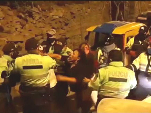 Personal de la Policía se enfrentó a los asistentes que respondieron de manera violenta, lanzando pedradas.