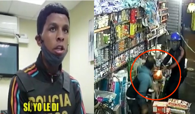 En San Martín de Porres, el bodeguero Yuri Burga fue víctima de un intento de robo por un sujeto que iba vestido como trabajador de Sedapal. El momento quedó registrado por las cámaras de seguridad y se logra ver como este ladrón le dispara a quemarropa, pero falla de milagro.