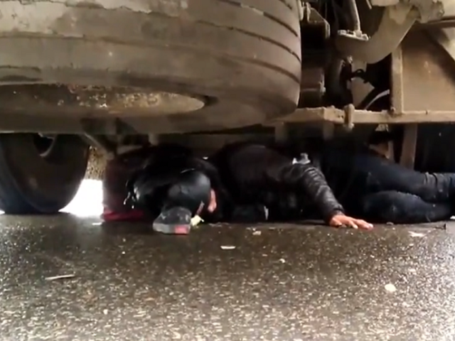 Surco: rescatan a motociclista que terminó debajo de bus