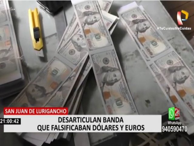 Efectivos de la Policía Nacional del Perú (PNP) desarticularon a una organización delictiva que se dedicaba a falsificar billetes. En su poder las autoridades encontraron 300 mil dólares, 100 mil euros y 50 mil soles.