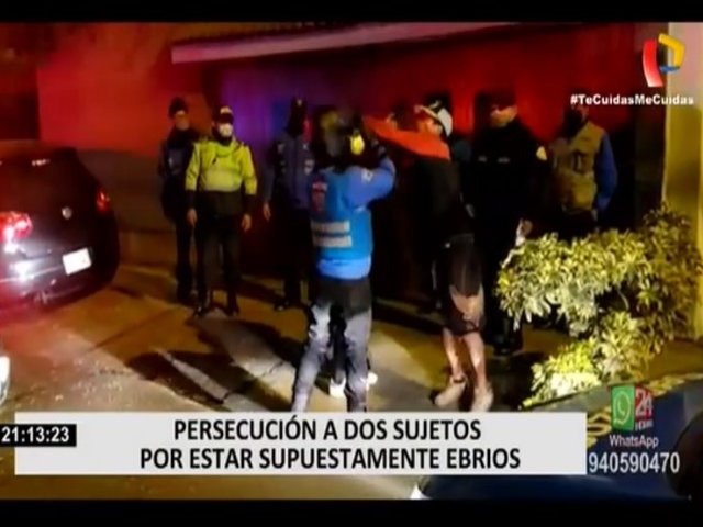 En el distrito de Miraflores, una persecución policial terminó con la captura de dos sujetos en aparente estado de ebriedad y con un patrullero destrozado. La intervención sucedió en la cuadra 8 de la calle Los Capulíes, pero el seguimiento empezó en el distrito de Surco donde los agentes del Escuadrón de Emergencia Sur 1 observaron la presencia de dos hombres sospechas en un auto negro.