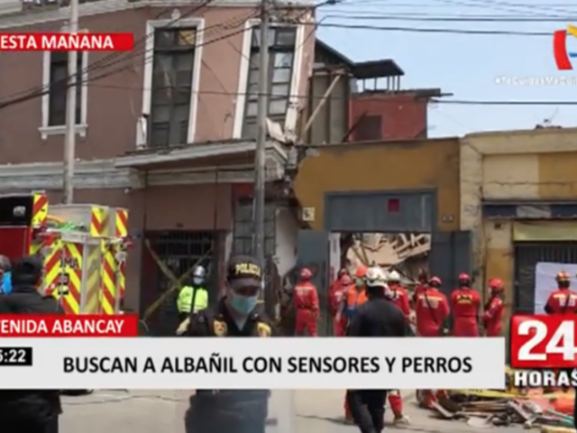 El Cuerpo General de Bomberos Voluntarios del Perú continúan trabajando arduamente para rescatar al albañil que terminó atrapado tras el derrumbe de una antigua casona, en la avenida Abancay.