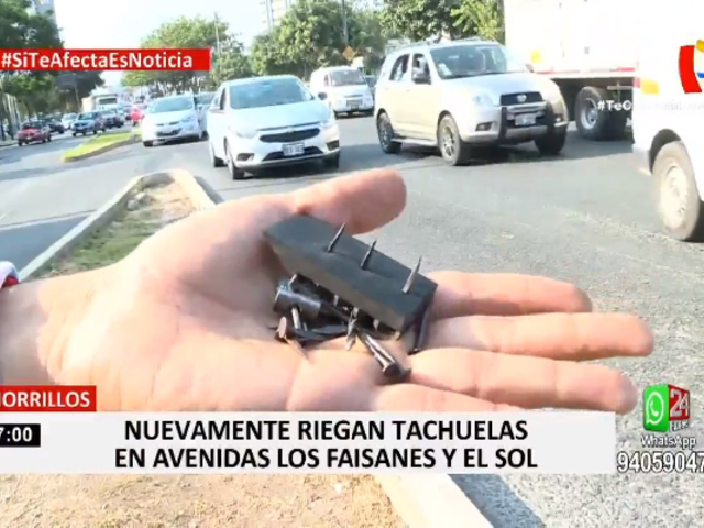 Un equipo de Panamericana TV llegó nuevamente al distrito de Chorrillos, donde constató que en el cruce de las avenidas Los Faisanes con el Sol, aparecieron tachuelas, clavos y tornillos en plena pista, a pesar que semanas atrás la comuna distrital procedió a la limpieza de la zona.