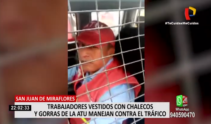 Los comerciantes que están ubicados en el cruce de las avenidas Los Héroes con Iglesias, en San Juan de Miraflores (SJM), registraron como un vehículo que sería de la Autoridad de Transporte Urbano (ATU) para Lima y Callao, circulaba contra el tráfico.