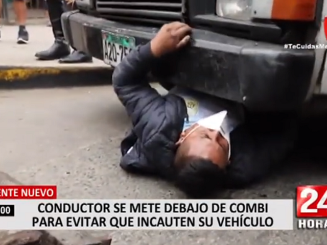 El conductor de una combi terminó atrapado luego de meterse debajo de su unidad para impedir que sea decomisada y llevada al depósito municipal.