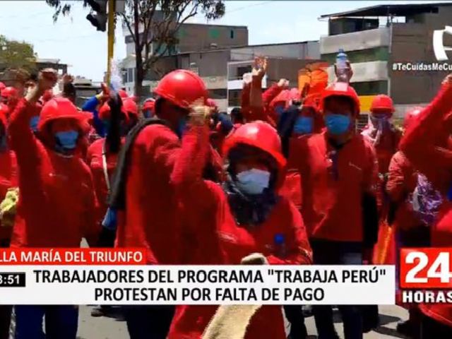 Un gran número de trabajadores del programa social “Trabaja Perú”, quienes prestan servicios de mantenimiento en parques del distrito de Villa María del Triunfo (VMT), denunciaron que la comuna no les ha pagado por su trabajo del pasado mes de octubre.