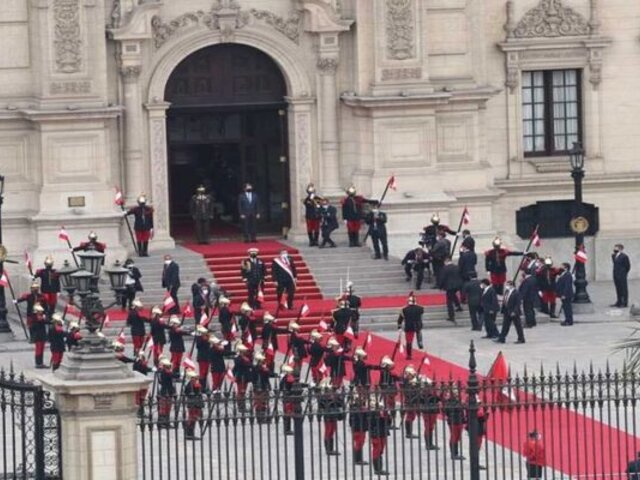Tras jurar como presidente de la República, Manuel Merino de Lama, se dirigió desde el Congreso hasta Palacio de Gobierno, donde recibió los honores correspondientes.