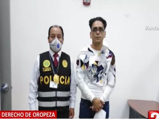 Agentes de la Policía Nacional detuvo a Brian Camps Gutiérrez, considerado el brazo derecho de Gerald Oropeza, cuando intentaba abordar un vuelo en el Aeropuerto Internacional Jorge Chávez.