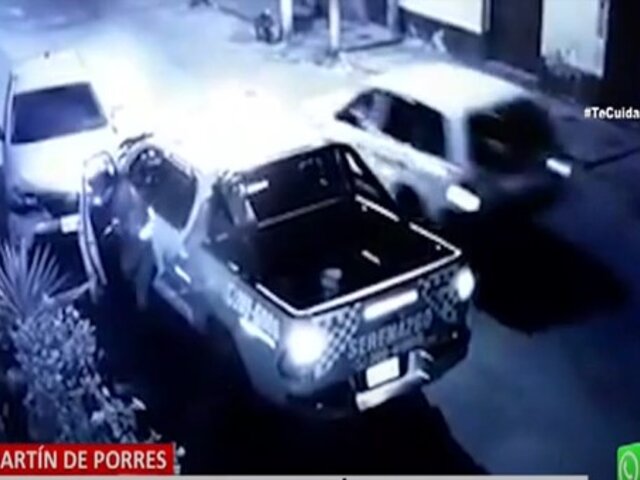 La tercera cuadra de la calle Alicia Alarcón, en el distrito de San Martín de Porres (SMP), fue escenario de un choque protagonizado por un patrullero de serenazgo que impactó contra un vehículo estacionado.