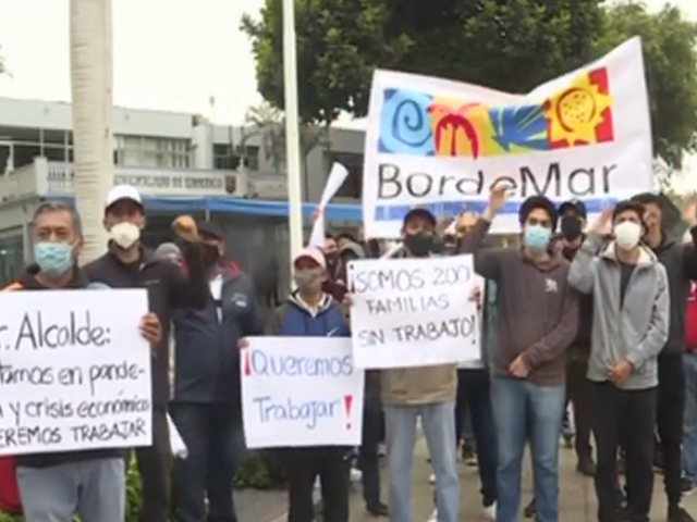 Un grupo de trabajadores de diversos establecimientos que están en el boulevard Bordemar, en Barranco, alzaron su voz de protesta por el cierre de varios locales en plena crisis económica por la pandemia y que consideran arbitraria.