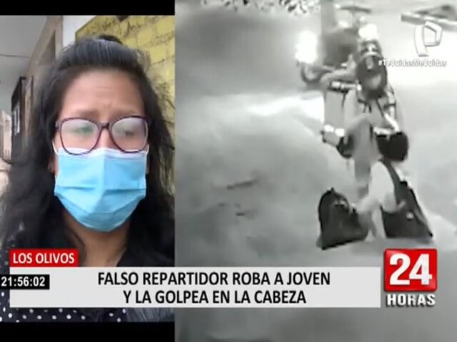 Aime Anaya, es la joven que fue encañonada por un delincuente que llevaba una mochila de la empresa de delivery "Rappi" para quitarle su celular. El hecho ocurrió cuando la víctima esperaba que le abran la puerta de su casa, ubicada en la urbanización Mercurio en el distrito de Los Olivos.