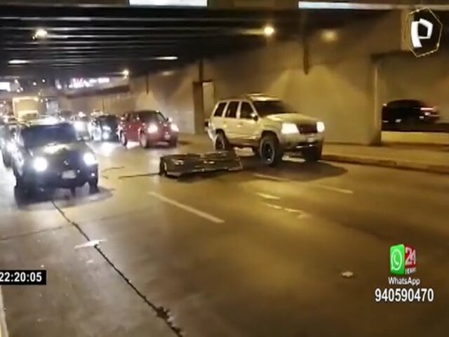 En un video que fue enviado a nuestro WhatSapp de denuncias, se pudo observar que una estructura metálica restringió el tránsito por un breve tiempo en la Vía Expresa. El hecho ocurrió a la altura del puente 28 de Julio, en el distrito de Miraflores.