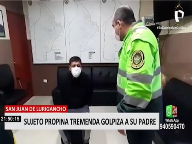En San Juan de Lurigancho (SJL), un sujeto golpeó salvajemente a su progenitor, hasta dejarlo semi inconsciente, porque se negó a darle cinco nuevos soles para que compre más licor. El agresor fue capturado por agentes de la comisaría de Santa Elizabeth.