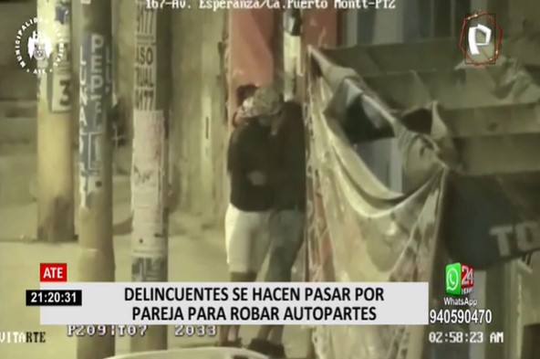 El hecho ocurrió alrededor de las 3:00 de la madrugada del último jueves, en Ate. Fue en ese momento cuando las cámaras de seguridad captaron a dos ladrones, quienes fingiendo ser enamorados intentaron robar un vehículo estacionado en la avenida Nueva Esperanza.