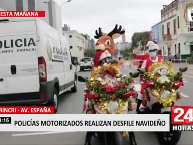 A muy pocos días de la Navidad agentes de la policía de tránsito protagonizaron un singular desfile navideño en los exteriores de la sede de la Dirincri, ubicada en el Cercado de Lima.
