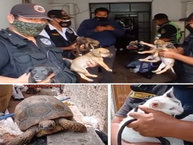 Las autoridades también informaron que en el predio encontraron a varios animales, entre los que estaba una tortuga.