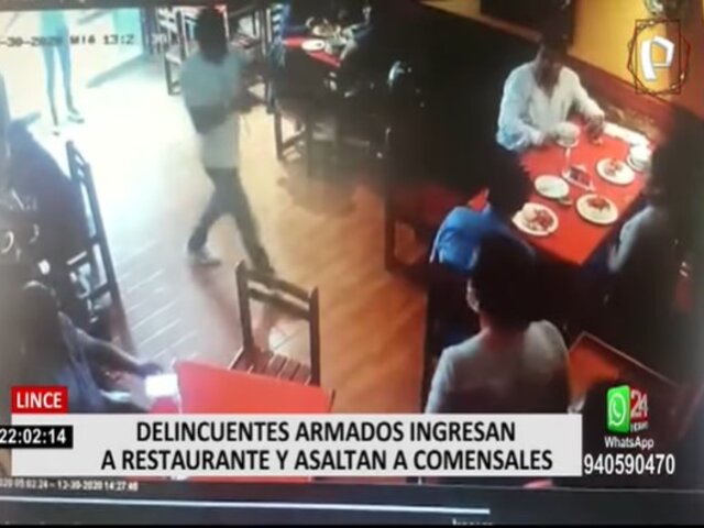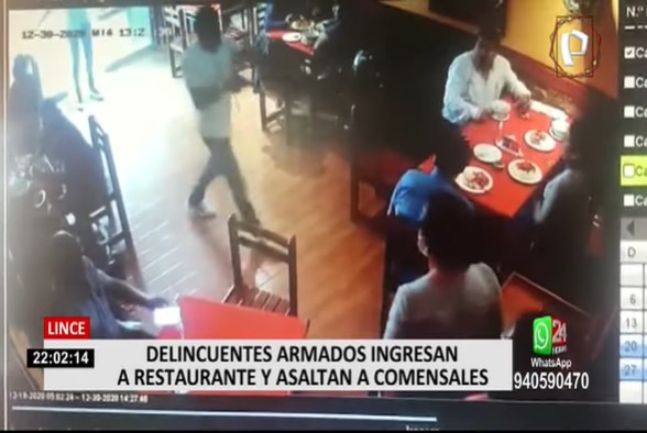 La tarde de este miércoles, dosdelicuentes armados ingresaron al restaurante La Olla Ayacuchana, en el distrito de Lince, y asaltaron a los comensales que se encontraban almorzando en el lugar.