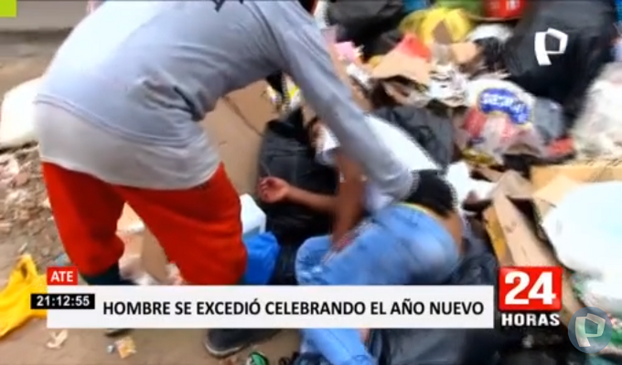Ate: hombre se excedió celebrando Año Nuevo y amaneció durmiendo en la basura