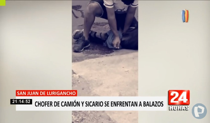 El chófer de un camión y un sicario se enfrentaron a balazos en la avenida Canto Grande, en San Juan de Lurigancho. El criminal herido huyó con rumbo desconocido.
