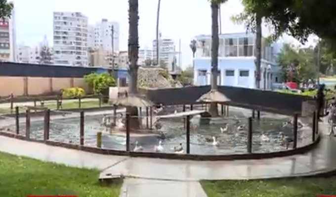 Los vecinos del distrito de Barranco se comunicaron a través del WhatsApp de Panamericana Televisión (940 590 470) para denunciar que los patos que viven en esta laguna artificial del parque de la Famila que está al lado del estadio Luis Gálvez Chipoco sobreviven en pésimas condiciones y que además, no reciben comida a diario, pues son ellos los que los alimentan.