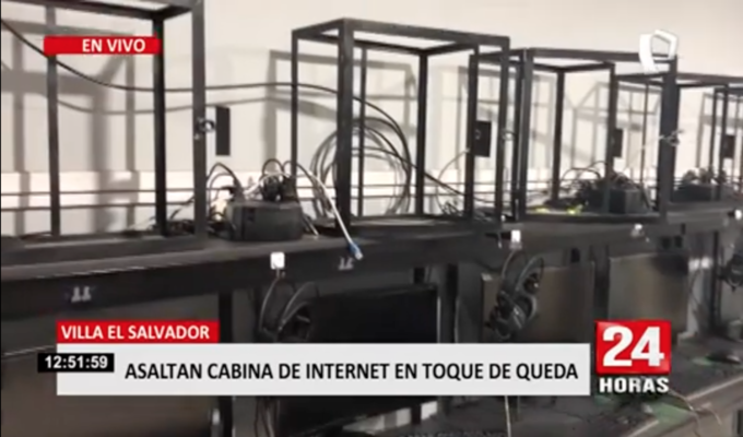 El toque de queda impuesto por las autoridades para frenar los contagios por la COVID-19 en el país no ha impedido que una cabina de internet, ubicada en Villa El Salvador, se convierta en blanco de unos delincuentes.