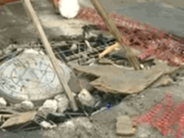 Un forado de gran tamaño, ubicado al frente del Hospital San José, en el Callao, mantiene bajo constante peligro a transeúntes y conductores.