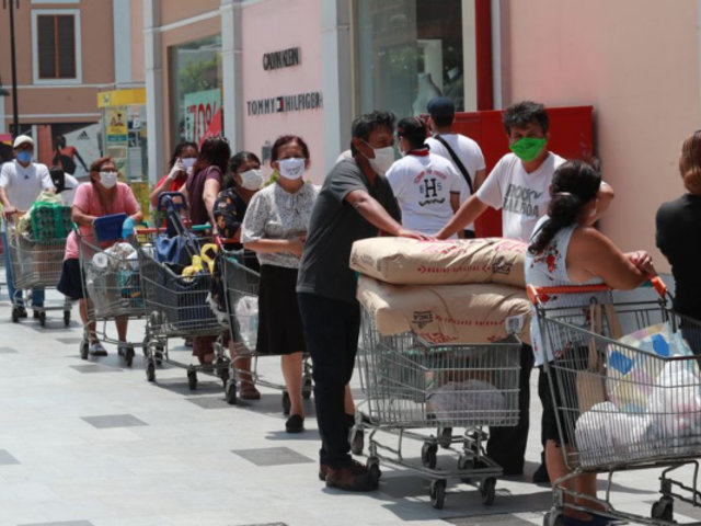 Este jueves, continúan reportándose largas colas en los exteriores de supermercados a días del retorno de la cuarentena total en Lima y Callao, que rige desde el 31 de enero hasta el 14 de febreros con el fin de evitar contagios masivos de coronavirus.