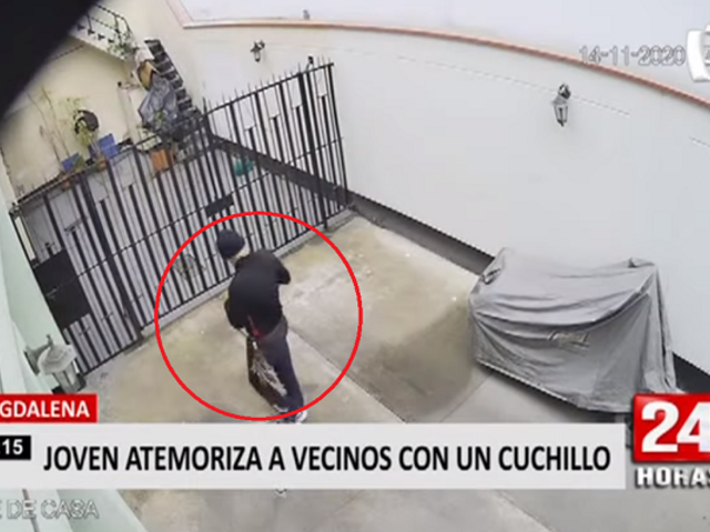 Los vecinos de una quinta en la calle Manuel Gonzáles Prada en el distrito de Magdalena del Mar, denunciaron que un joven con machete y a veces con un cuchillo en mano los amenaza constantemente. Es por ello que, solicitan protección policial las 24 horas del día, ya que temen que su integridad o la de sus familiares.