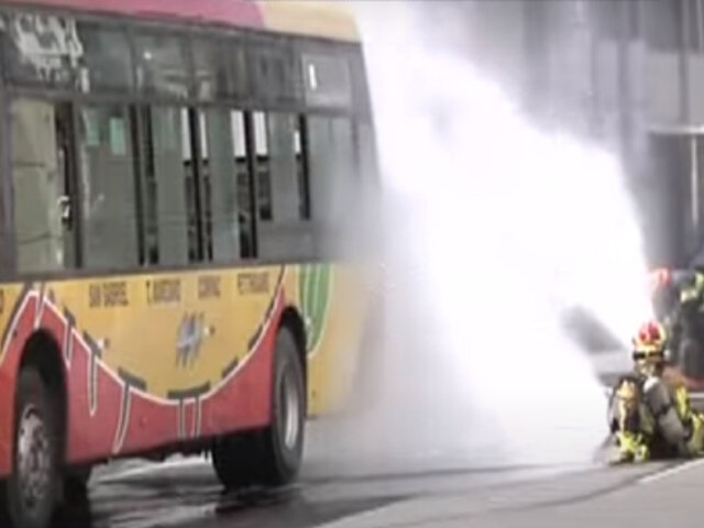 El bus quedó varado al mediodía, a unos metros de un grifo, por lo que bomberos y el personal de serenazgo de Jesús María impidieron que las personas se acerquen por temor a una explosión.