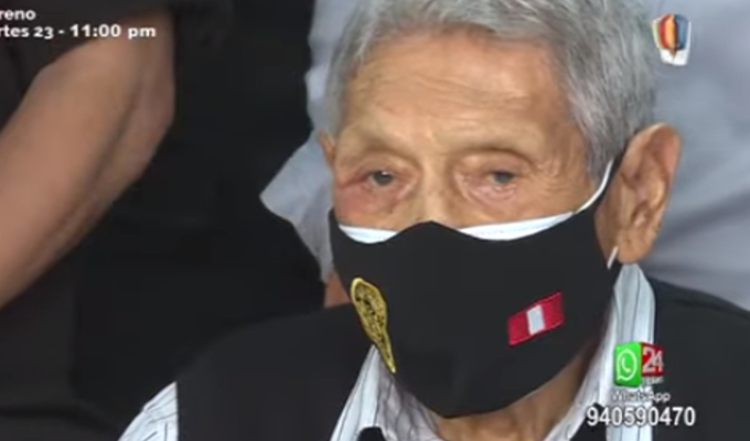 A sus casi 105 años de edad, Ángel Augusto Cruz Salazar, quien es un agente policial en situación de retiro, fue vacunado contra la COVID-19 en su domicilio del Callao.