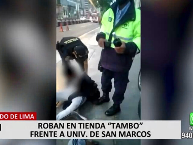 Esta madrugada, delincuentes robaron una tienda de la cadena Tambo. El asalto ocurrió en el loca ubicado frente a la Universidad San Marco, en el Cercado de Lima.