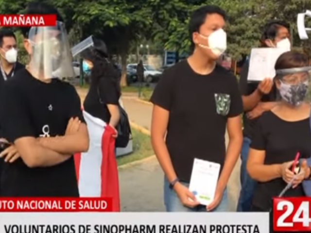 Voluntarios de vacuna Sinopharm protestan en Instituto Nacional de Salud