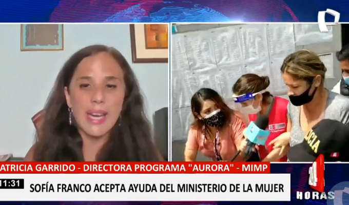 Tras el violento incidente protagonizado por la exconductora Sofía Franco, detenida por la policía en el marco de la denuncia que hiciera por agresión su esposo, el alcalde de La MolinaÁlvaro Paz de la Barra, el Ministerio de la Mujer (MIMP) viene brindándole no solo ayuda legal, sino psicológica y emocional, informaron.