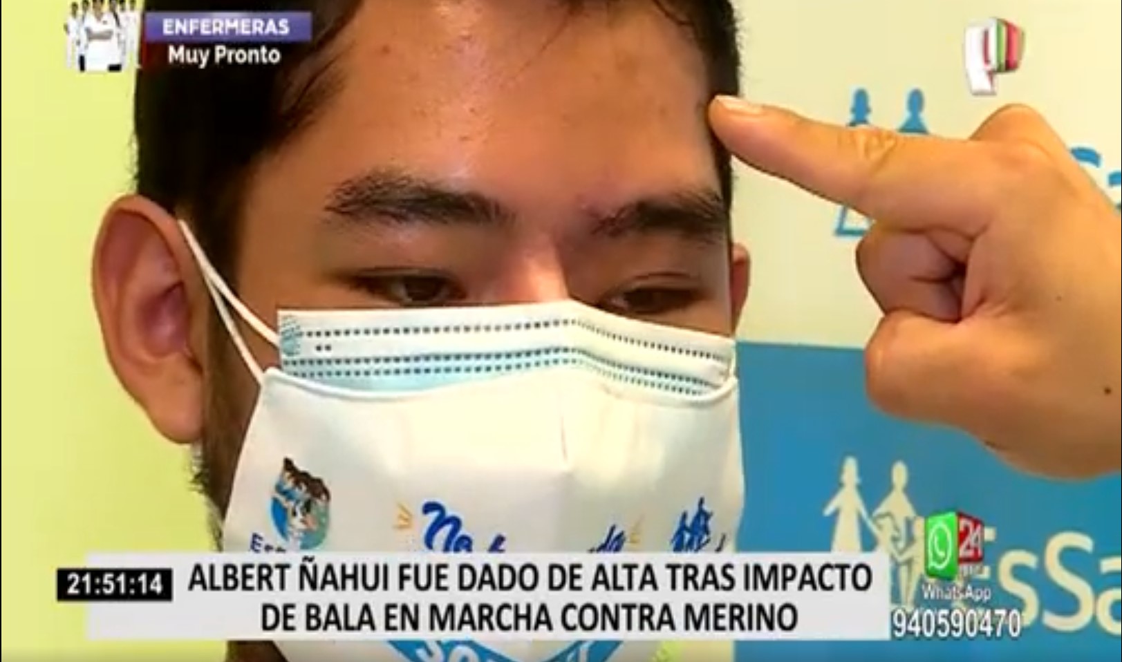 Alberth Ñahui Pérez (23) es el nombre de un joven que perdió la visión de su ojo izquierdo, tras recibir un disparo en el cráneo durante los enfrentamientos de agentes policiales y los manifestantes, en las protestas de noviembre pasado con la gestión interina de Manuel Merino.