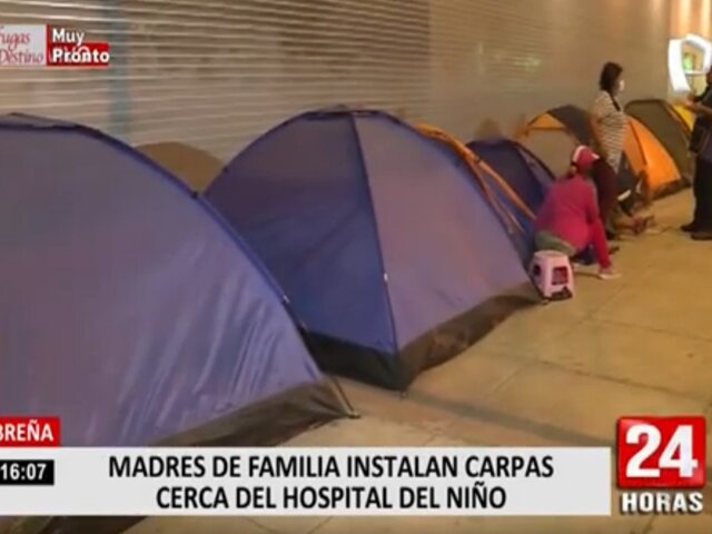 Debido a que no tienen un lugar donde quedarse, ya que llegaron desde provincia, decenas de madres duermen en carpas en las afueras del Hospital del Niño en Breña.