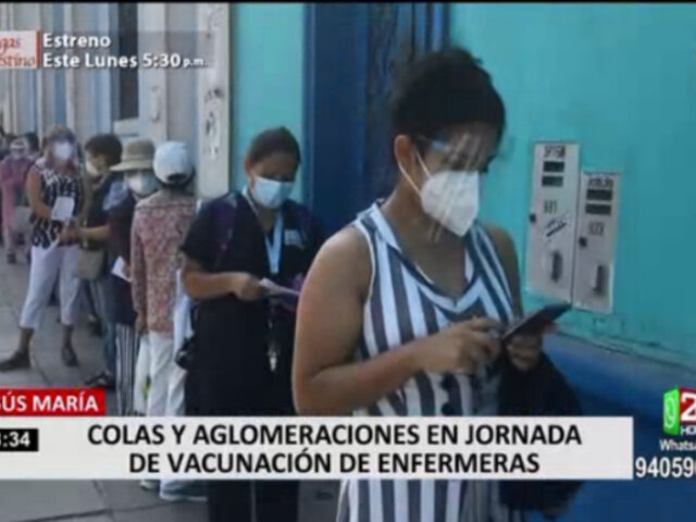 Durante la segunda jornada de vacunación del Colegio de Enfermeros del Perú se registraron largas colas, aglomeraciones y falta de información.