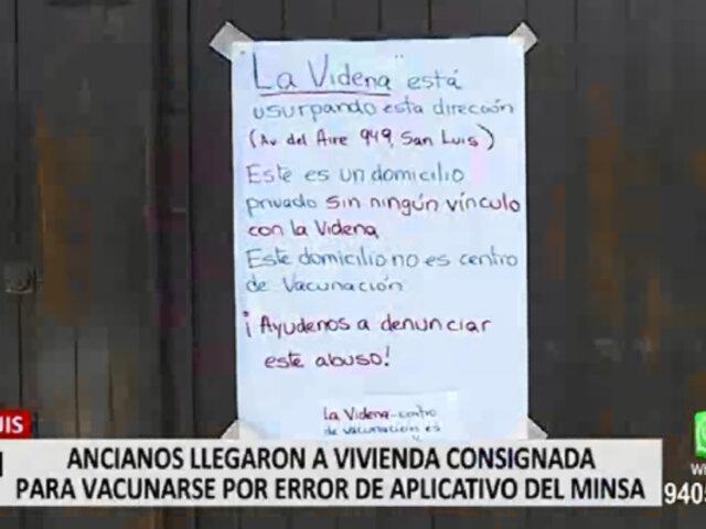 Una vivienda en el distrito de San Luis figura como local de vacunación contra la COVID-19 y raíz de esta situación, la familia que habita el predio tuvo que colocar un letrero indicando que no era centro de inmunización, pues recibieron el llamado a su puerta de varios adultos mayores.